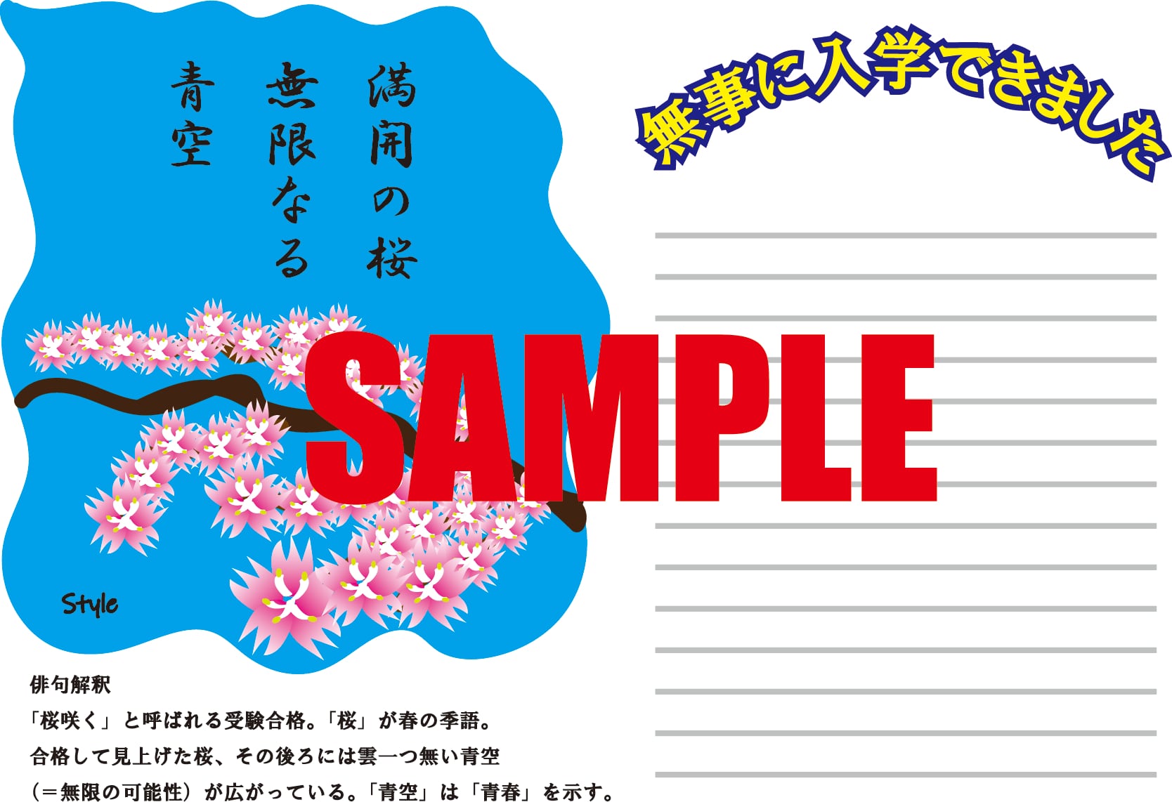 入学挨拶状 ポストカード